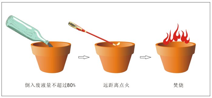 (2)焚燒處理。不能循環(huán)使用的廢液用焚燒法做無(wú)害化處理。焚燒法適合處理笨類、醇類、脂類、烷類、油類(注意:不能用焚燒法處理汽油)等以及它們的混合物,焚燒廢液時(shí)要用專門的敞口陶瓷容器,容器的容積不超過1000ml,每次焚燒的廢液不超過800ml,并應(yīng)在室外空曠的地方焚燒,點(diǎn)火時(shí)要用長(zhǎng)桿點(diǎn)火器,焚燒過程中不能向正在焚燒的容器中添加廢液,以免發(fā)生危險(xiǎn)。