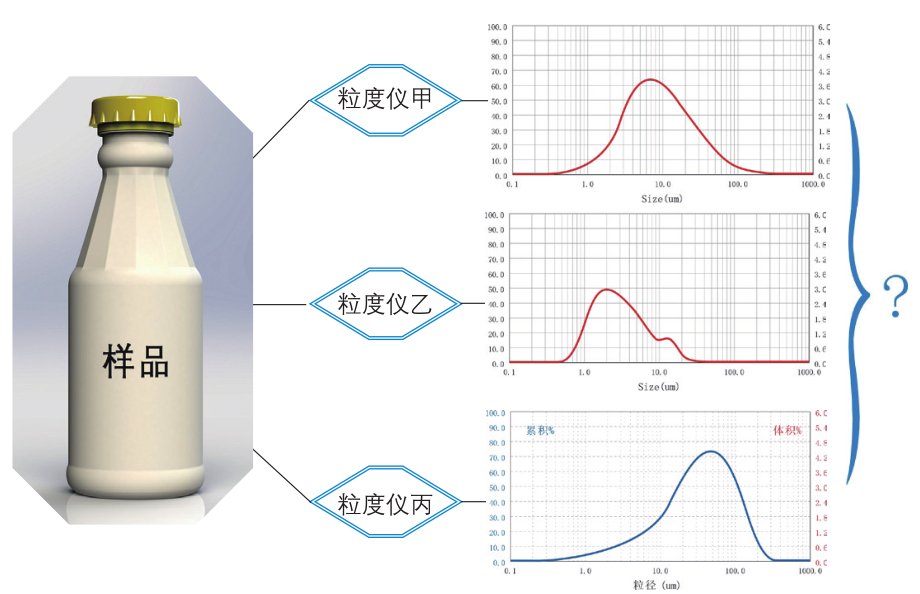 (2)如果是原理相同的儀器甚至是品牌相同的儀器,首先要統一測試條件,包括介質、分散劑、分散時間、遮光率、取樣方法等。其次查看儀器狀態, 包括背景、對中、樣品池、折射率、分析模式、參數設置等,如果仍無法統一就與廠家聯系。
