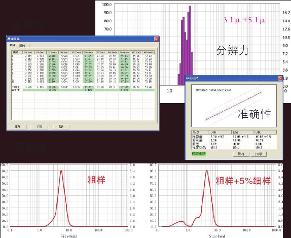 (1)靈敏度:指兩個粒度相差很小(如D50 相差 1μm)時,分析結果的變化量。