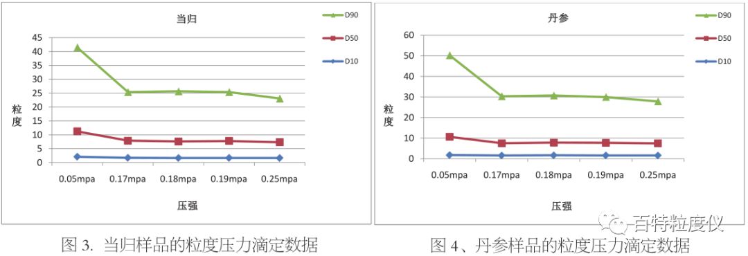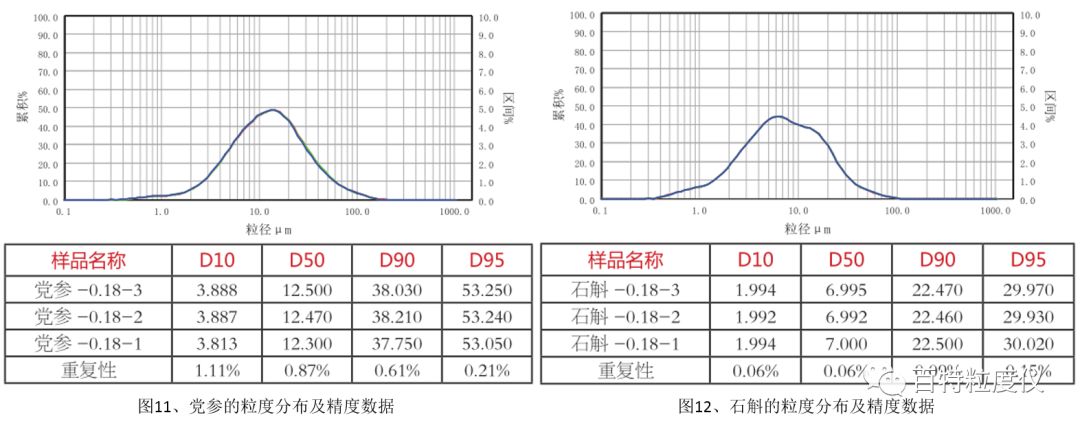 從整體來(lái)看,激光粒度儀干法測(cè)試中藥粉末顆粒粒徑可以獲得較高的精密度,樣品區(qū)分度及數(shù)據(jù)相關(guān)性也比較好。雖然濕法通過(guò)表面活性劑及超聲也可以對(duì)粉末進(jìn)行分散,但由于中藥種類(lèi)繁多,效果不佳,團(tuán)狀絮狀顆粒較多。因此干法分散是更合適測(cè)試中藥粉末的方法。
