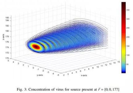 可以發(fā)現(xiàn),隨著中心位置的拉大,病毒濃度迅速下降。這一點(diǎn)說明,在開放空間可能含有病毒的氣溶膠顆粒會(huì)迅速擴(kuò)散,只要保持良好的通風(fēng)狀態(tài)和做好防護(hù)措施,氣溶膠的感染風(fēng)險(xiǎn)極低。