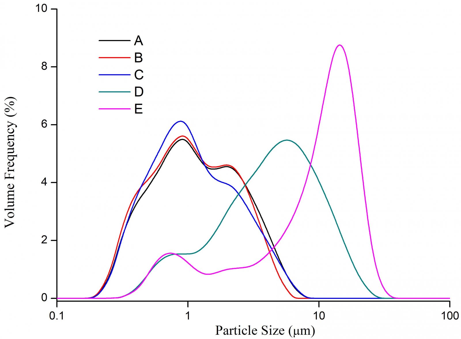常用的鋰離子電池正極材料有磷酸鐵鋰、鈷酸鋰、碳酸鋰和高鎳三元材料等,它們的粒徑分布是影響電池性能的關(guān)鍵因素,其粒度分布可優(yōu)化鋰電池的能量和功率。百特實驗室采用Bettersize2600激光粒度儀檢測了5種磷酸鐵鋰樣品,它們的粒度分布如下:
