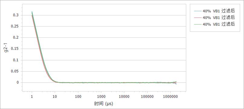 丹東百特研制的BeNano 90納米粒度儀能有效測試維生素B1的粒度。220 nm 的PES水性濾膜能有效排除灰塵、團聚物等大顆粒,使測量結(jié)果更加真實準(zhǔn)確,重復(fù)性更好。對測試其它弱散射的小分子樣品粒度,這種儀器和方法同樣適用。