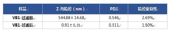 表1. 維生素B1過濾前后的粒度結(jié)果