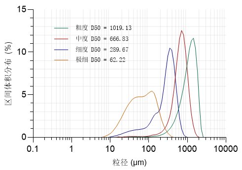 從圖2中可見,隨著研磨程度的提升,粒度分布逐漸減小,表明Bettersize2600能夠準確區分和檢測在不同研磨程度下的咖啡粉的粒度及其分布。