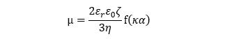 其中ε為介電常數,𝜂為溶劑粘度,f(κα)為Henry函數,κ為德拜半徑倒數,α代表粒徑,κα代表了雙電層厚度和顆粒半徑的比值。