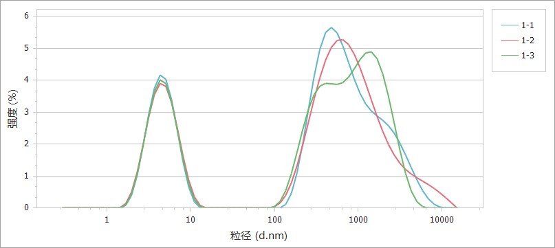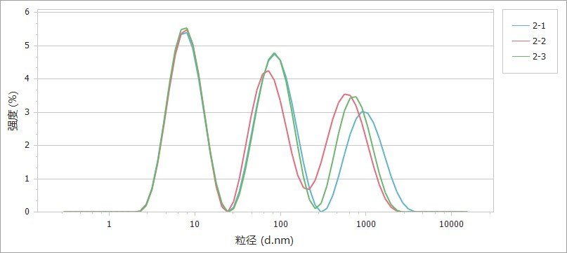 通過使用動態光散射技術,得到當前分散條件下同樣品的粒徑和粒徑分布。其中1#樣品Z-均直徑為365.2±0.8 nm,PDI為0.58;2#樣品Z-均直徑為41.0±0.3 nm,PDI為0.50。可以看出粒徑測試結果具有很好的重復性,兩個樣品的PDI較大,分布都比較寬,這也可以從樣品的粒徑分布曲線中看出。