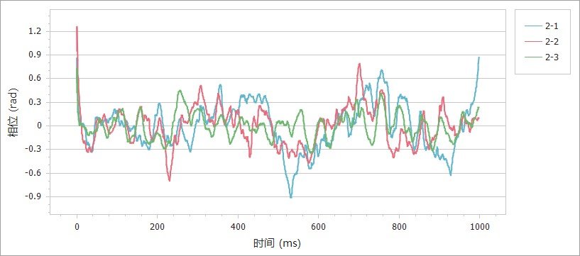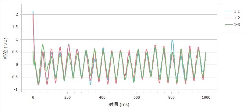 通過電泳光散射,得到了樣品的Zeta電位信息。圖3中展示了三次重復性測試的相圖,相圖斜率代表了散射光由于電泳運動造成的頻率的偏移??梢酝ㄟ^圖中曲線看出,分散在甲醇中的1#樣品斜率清晰,信噪比良好,而分散在乙醇中的2#樣品相圖相對嘈雜。