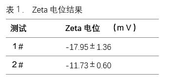 1#納米硅粉末樣品分散在甲醇分散液中,2#納米硅樣品分散在乙醇分散液中,施加超聲波進行分散。通過BeNano 90 Zeta內置的溫度控制系統開機默認測試溫度控制為25℃±0.1℃,樣品注入玻璃粒徑池采用動態光散射進行粒徑池進行粒徑測試。使用插入式電極進行Zeta電位測試。