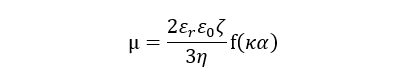 其中ε為介電常數,𝜂為溶劑粘度,f(κα)為Henry函數,κ為德拜半徑倒數,α代表粒徑,κα代表了雙電層厚度和顆粒半徑的比值。