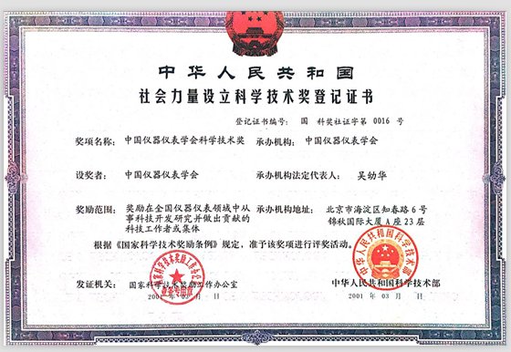 為表彰在儀器儀表科技工作中做出突出貢獻(xiàn)的單位和個(gè)人,鼓勵(lì)自主創(chuàng)新、團(tuán)結(jié)協(xié)作,促進(jìn)科學(xué)研究、技術(shù)開(kāi)發(fā)與社會(huì)發(fā)展密切結(jié)合,促進(jìn)科技成果轉(zhuǎn)化,提高我國(guó)儀器儀表的綜合實(shí)力和水平,根據(jù)《國(guó)家科學(xué)技術(shù)獎(jiǎng)勵(lì)條例》和《社會(huì)力量設(shè)立科學(xué)技術(shù)獎(jiǎng)管理辦法》的有關(guān)規(guī)定,經(jīng)國(guó)家科技部批準(zhǔn),在國(guó)家科技獎(jiǎng)勵(lì)主管部門(mén)注冊(cè),經(jīng)國(guó)家科學(xué)技術(shù)獎(jiǎng)勵(lì)工作辦公室頒證(登記證書(shū)編號(hào):國(guó)科獎(jiǎng)社證字第0016號(hào)),由中國(guó)儀器儀表學(xué)會(huì)設(shè)立面向全國(guó)儀器儀表領(lǐng)域的綜合性獎(jiǎng)項(xiàng)——科學(xué)技術(shù)獎(jiǎng)。