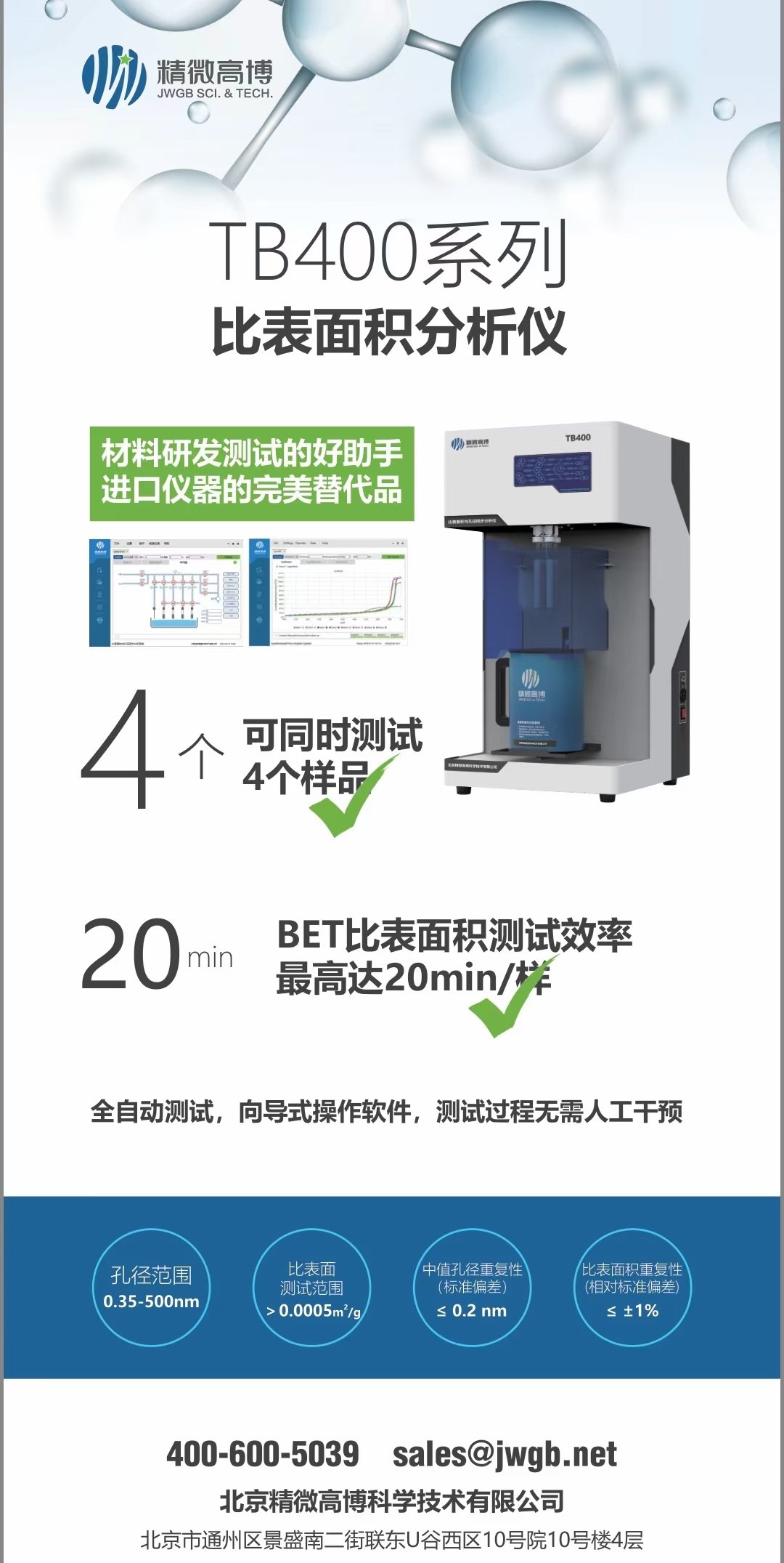 北京精微高博科學技術有限公司是中國材料表征儀器的領先制造商,專業從事靜態比表面積及孔徑分析儀、動態比表面積測定儀、蒸汽吸附儀、真密度儀等物性分析設備的研究。主導產品有D系列動態比表面積測定儀、TB系列靜態比表面積及孔徑分析儀等。