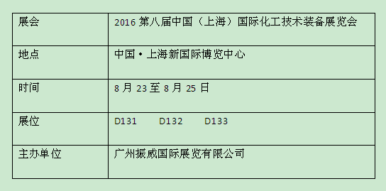 密友裝備制造愿與您相約2016中國(上海)國際化工技術裝備展覽會,攜手共進。預祝展會圓滿成功!
