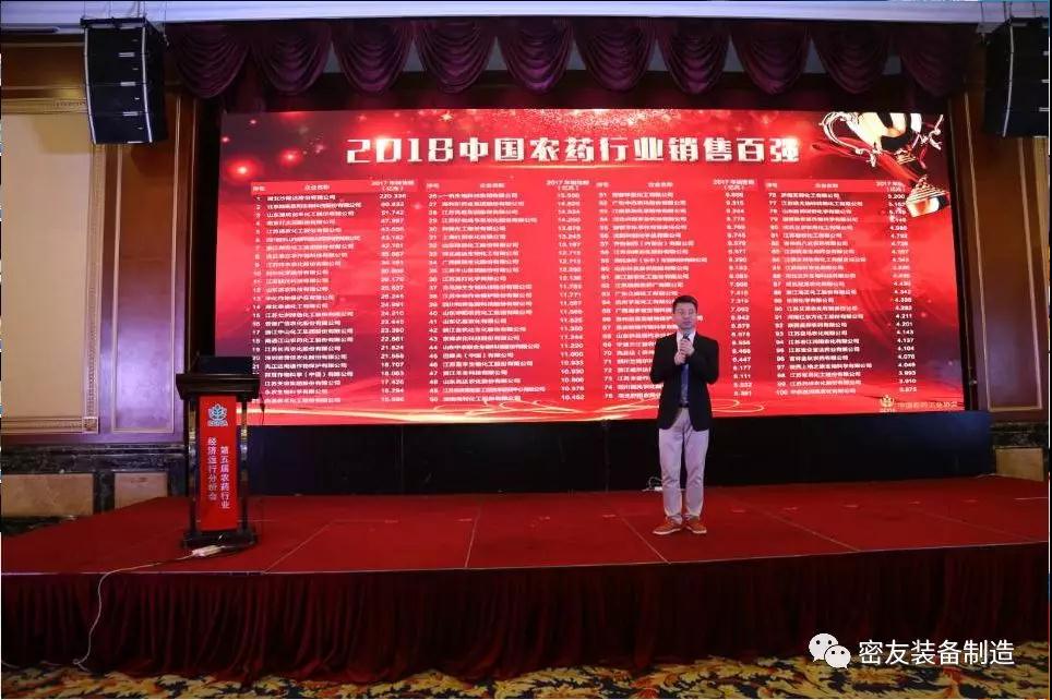 作為農藥行業專用設備制造商,江蘇密友粉體新裝備制造有限公司銷售副總胡建剛應邀出席大會。密友裝備制造在農藥行業一直不斷開拓和創新,憑借優質的產品和專業的服務贏得了良好的口碑!