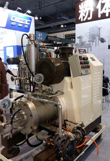 密友粉體新裝備公司展出產品有電池材料用氣流粉碎機、臥式砂磨機等。尤為值得關注的是密友新一代深冷超細粉碎高分子材料氣流粉碎機,這是密友開發的新一代深冷超細粉碎氣流粉碎機組,比原先開發的深冷粉碎在生產成本上降低了35%~55%,達到了節能效果,是針對高分子材料、粘性、韌性、強纖維的超細粉碎。該裝備的成功研制不僅代表高分子材料性能將進入新的制高點,而且證明了密友在粉體裝備制造方面的突破創新能力,大大提升了我國粉體裝備制造業整體水平??蓮V泛應用于高分子材料、特種陶瓷,特種塑料,氟化工,生物、制藥、中藥、非金屬礦、軍工等行業 。