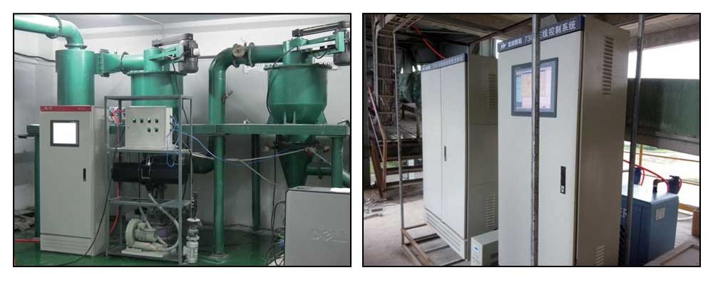 本系統(tǒng)的主要功能是可以對流動(dòng)的顆粒粒度分布進(jìn)行實(shí)時(shí)監(jiān)測,并提供準(zhǔn)確的控制信號(hào)。取樣器把粉體樣品從生產(chǎn)線管道中取出,通過卸料器傳給喂料器,喂料器均勻地把樣品送入樣品分散泵中,分散好的粉體樣品通過防堵反吹閥進(jìn)入儀器主機(jī),在保護(hù)氣的作用下通過樣品窗口,回料泵把測試過的粉體樣品送回到生產(chǎn)線管道中。測試過程中主機(jī)把測試到的粉體散射光譜實(shí)時(shí)地傳輸?shù)浆F(xiàn)場控制柜,由安裝到現(xiàn)場控制柜PC平板中的在線粒度分析軟件通過反演運(yùn)算得到粉體樣品的粒度分布,現(xiàn)場控制柜把得到的粒度分布數(shù)據(jù)一方面通過遠(yuǎn)程通訊傳給中控PC,工作人員可根據(jù)粒度分布數(shù)據(jù)對生產(chǎn)線及時(shí)作出調(diào)整,也可直接傳輸給生產(chǎn)線控制系統(tǒng),直接調(diào)整生產(chǎn)線上的設(shè)備使其運(yùn)轉(zhuǎn)到最佳位置。現(xiàn)場控制柜中的PLC系統(tǒng)是整套系統(tǒng)的控制中心,能控制系統(tǒng)上每一個(gè)部件的開關(guān),并對系統(tǒng)的運(yùn)行實(shí)時(shí)監(jiān)控,對異常情況及時(shí)報(bào)警。