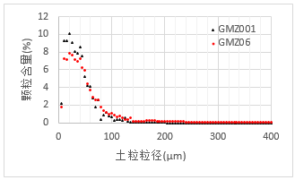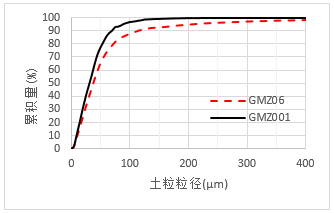 試驗(yàn)采用動(dòng)態(tài)數(shù)字成像技術(shù)快速準(zhǔn)確地對(duì)同一產(chǎn)地的兩種GMZ膨潤土試樣的粒度、粒形進(jìn)行了分析,不僅能定量地測(cè)得GMZ001膨潤土的粒徑小于GMZ06膨潤土,而且還直觀地顯示了各粒徑段具體的差異,對(duì)從微觀角度全面了解膨潤土粉末材料的顆粒組成性質(zhì)提供了有益參考,這是傳統(tǒng)篩分法、激光衍射法都無法做到的。