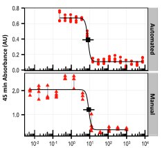H3N2抑制物4等藥物篩選。自動(dòng)化實(shí)驗(yàn)和手工實(shí)驗(yàn)的IC50值高度一致。