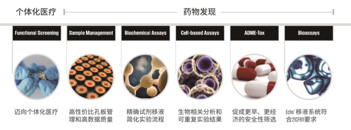 Echo使用一種創新的技術對液體處理進行了變革,這種技術比傳統的移液方法產生更快、更準確的結果。有了Echo技術,實驗室的科學家們就可以應對用更少的資源做更多事情的挑戰。Echo液體處理系統提供了一個簡單的操作系統,可以處理多個工作流并生成更快的結果,同時消除了傳統的基于吸頭的液體處理所帶來的限制。隨著科學技術的發展,Echo的應用之旅也在不斷的前進與完善,以期為用戶提供更合適的幫助。目前,Echo已經可以廣泛應用于藥物發現、基因組研究、癌癥研究和個體化用藥,具有如下優點: