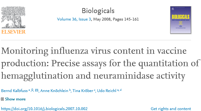 2、《監測疫苗生產中流感病毒的含量:精確測定血凝和神經氨酸酶活性》
