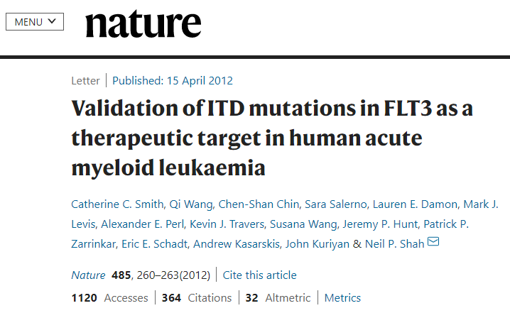 4、《證實FLT3中ITD突變是治療人類急性髓系白血病的靶點》