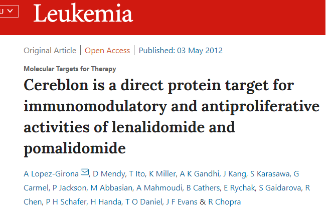 5、《小腦是利那度胺和波馬度胺免疫調節和抗增殖活性的直接蛋白靶點》