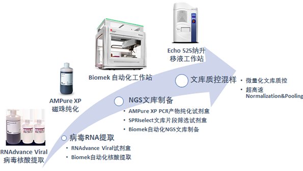 正如全面開展的核酸檢測,基因測序工具也將進一步轉變為抗擊疫情的常規武器。針對新冠病毒基因組測序,小貝特別制定從新型冠狀病毒核酸提取試劑盒到自動化NGS測序文庫制備的高通量基因測序方案,為奮戰在一線的你備齊克“敵”利刃。