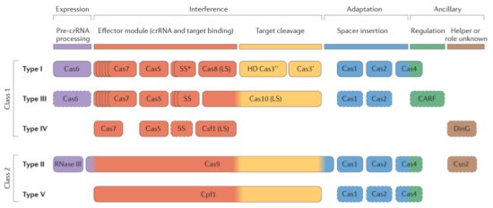 我們熟知的CRISPR系統(tǒng),最常聽到、見到的是Cas9蛋白,但Cas蛋白并不是只有Cas9,下圖中為Cas蛋白的分類。