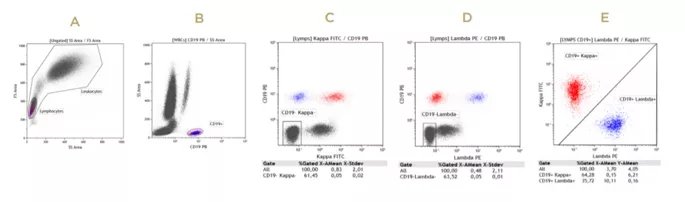 ■ 在管中添加抗體:CD19-PB,Kappa-FITC和Lambda-PE