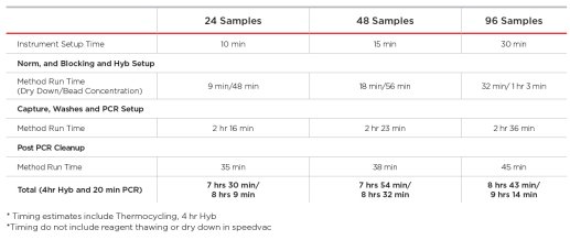 Figure 5. 完成 24/48/96個樣本的自動化IDT xGen?雜交捕獲測序文庫制備預估耗時。