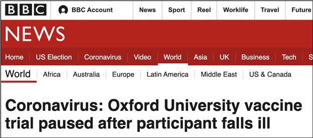 制藥公司阿斯利康(AstraZeneca)于9 月 8 日表示,由于實(shí)驗(yàn)中一名接種者出現(xiàn)疑似嚴(yán)重的不良反應(yīng),該公司宣布暫停其 COVID-19 疫苗的 III 期試驗(yàn)。該疫苗由英國牛津大學(xué)和阿斯利康制藥公司共同研發(fā),近期進(jìn)入 III 期臨床試驗(yàn)。阿斯利康在一份聲明中表示:“作為正在進(jìn)行的新冠病毒疫苗全球隨機(jī)試驗(yàn)的一部分,為了審查安全數(shù)據(jù),我們的標(biāo)準(zhǔn)審查程序?qū)е聲和R呙缃臃N。這是一種常規(guī)行為,在調(diào)查過程中,一旦在某項(xiàng)試驗(yàn)中出現(xiàn)不明原因的潛在疾病,就必須采取這種行為,以確保試驗(yàn)的完整性。在大型試驗(yàn)中,疾病偶爾會發(fā)生,但必須進(jìn)行獨(dú)立審查,仔細(xì)檢查。我們正在努力加快對單個(gè)事件的審查,盡量減少對試驗(yàn)時(shí)間表的任何潛在影響。” (來源:STAT NEWS、BBC)