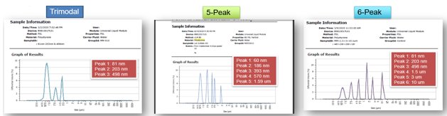 圖3:更加復雜的多種粒徑的微球混合,高分辨率技術獲得的結果仍與預期一致。