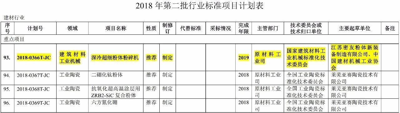 在工信部印發(fā)《2018年第二批行業(yè)標準制修訂和外文版項目計劃》里,由江蘇密友粉體新裝備制造有限公司、中國建材機械工業(yè)協(xié)會起草的《深冷超細粉體粉碎機》被列為建材行業(yè)重點項目。