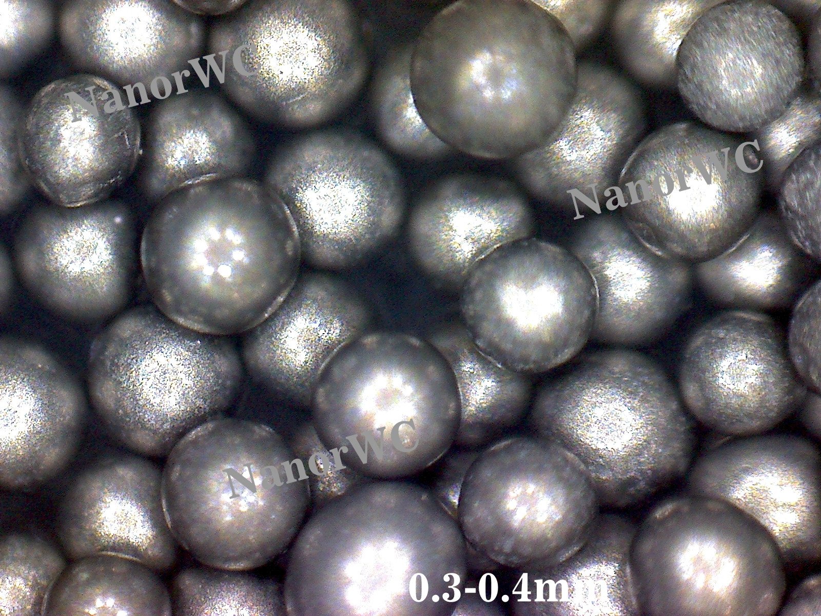 三、同時具有高密度、高硬度和高強度的“三高”新型的耐諾碳化鎢珠NanorWC,跟釔穩定氧化鋯珠比較,密度高出2.5倍,硬度高出25%,強度高出30%。這樣,超硬材料的粗磨和精磨就遇到了克星,同時比重成倍提高也成倍的增加了小珠子在砂磨機研磨腔內的沖量,更好的剝離那些難分散的物料如石墨烯和單壁碳納米管等。展示的直徑有0.3mm,0.9-1.1 mm和5mm。