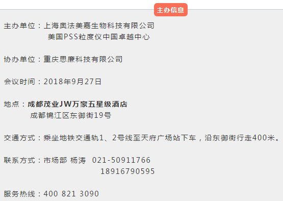 美國PSS粒度儀中國卓越中心誠邀您蒞臨參加2018年四川成都粒度檢測應用培訓會