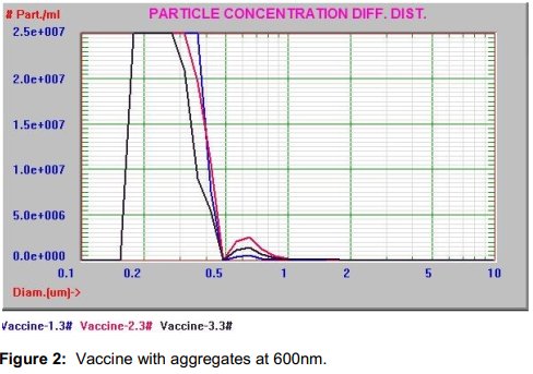 圖3顯示了更準確的濃度測量結果,可以通過更改顯示比例來進行。從該圖可以看出,疫苗2在600nm處的聚集體濃度是疫苗1的5倍。