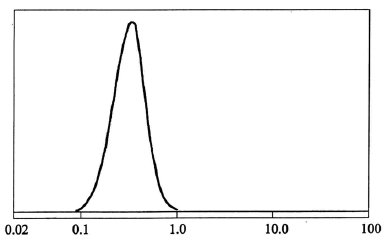 圖6:通過Fraunhofer(激光)衍射獲得的氧化鈰#1的體積-重量PSD,這是另一種“集成”方法-體積-重量的平均直徑也≈0.3μm。
