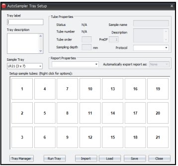 使用圖3和4所示的對話框在軟件中測量方法設置和托盤采樣方法設置。每個樣品可以具有唯一的測量方法,但是通常使用單個方法分析整個托盤。托盤采樣可以按所需的任何順序進行組織。在客戶現(xiàn)場進行的內(nèi)部測試和評估均證明,在托盤運行的開始和結(jié)束時比較相同的樣品沒有可檢測到的變化。樣品針下降到樣品管中。每個樣品管可以進行三份(或更多)重復。完成后,使用兩步過程清潔針頭和流體。第一個清潔容器清潔針頭的外部,而第二個清潔容器清潔針頭和流體的內(nèi)部。清潔的流體通過系統(tǒng)和傳感器沖洗,直到達到可接受的背景值。然后對托盤的其余部分重復這一過程。單個樣品處理時間不到2分鐘,每天可處理數(shù)百個樣品。