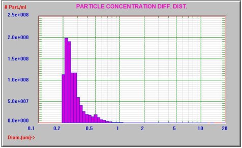 免疫球蛋白(IgG),約150 kDa, 1% PBS。使用FX和LE傳感器以及SIS采樣器的Accusizer FX- nano來測量未稀釋的樣品。結果如圖1所示。總顆粒計數= 109,343,濃度= 9.7 x 108顆/mL。