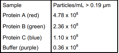 表1:緩沖液和三個蛋白樣品的顆粒濃度