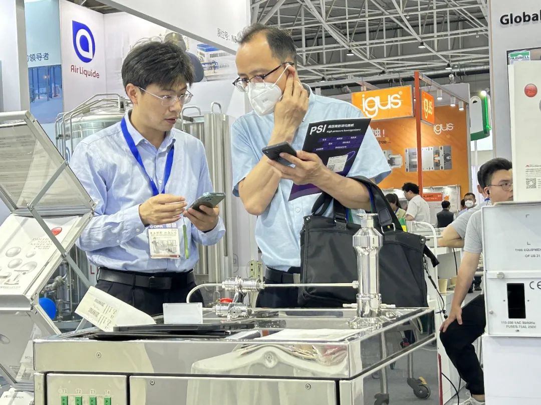 此次我們的PSI微射流均質機、HMM珠磨機、AccuSizer A7000顆粒計數器、凍存袋、過濾濾芯等五款產品均亮相此次藥機博覽會,其中獲得諸位老師們青睞的PSI微射流均質機,擁有小試、中試、生產型三個型號,具有低噪音、實時監控溫度、數據可追溯等優點,最大壓力可達3000psi(2067bar),最大工作量可達20L/h(小試)、70L/h(中試)、330~550L/h(生產型)。