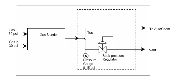 AutoChem的氣體混合器可使用戶無需購買定制混合氣瓶而進行一系列不同氣體濃度的實驗。為達到AutoChem的最優性能,混合氣壓力必須穩定且在10-15psi之間。通常的氣體混合器無法滿足這一需求,但AutoChem可以通過配備背壓調節器和放空線路,然后混合器提供足量的氣體,從而達到上述壓力要求。
