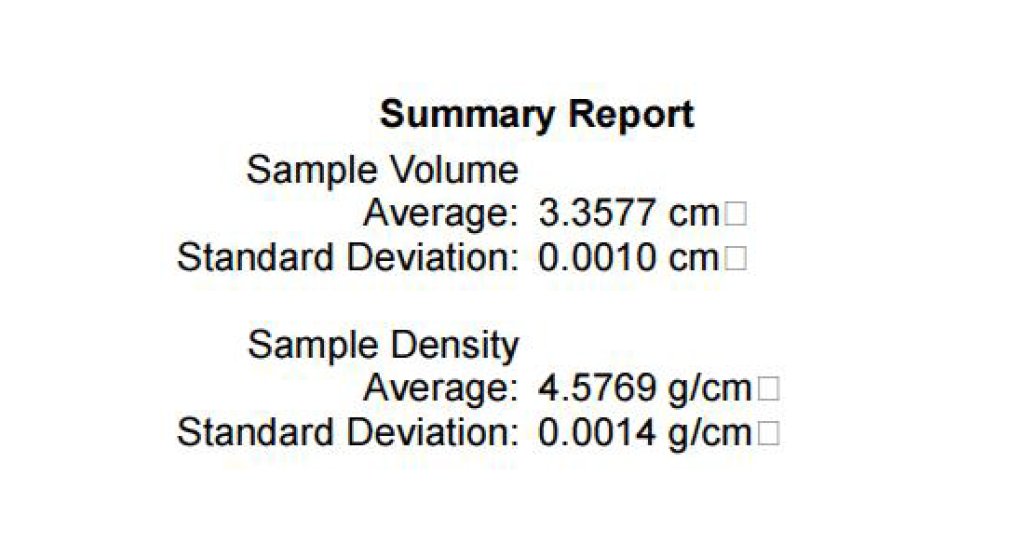 從上面的表格中可以看出,材料的真實體積都在3.35cm3 范圍內,僅在小數點后第三位出現浮動,計算得出的密度約為 4.57 g/cm3,同樣僅在小數點后第三位出現浮動。這個變化可以說非常小了。