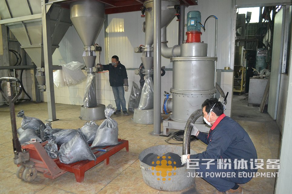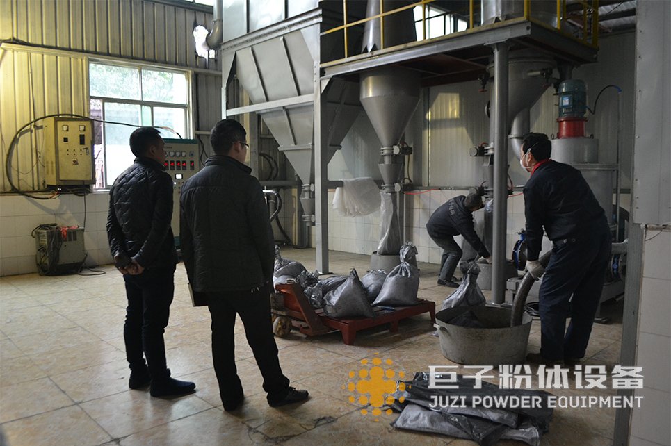 此次實驗由巨子粉體設備銷售總監(白總)負責跟進,實驗設備采用JZC-400-2型即兩級串聯的400型分級式沖擊磨,屬于鋰電負極材料粉碎分級專用設備。