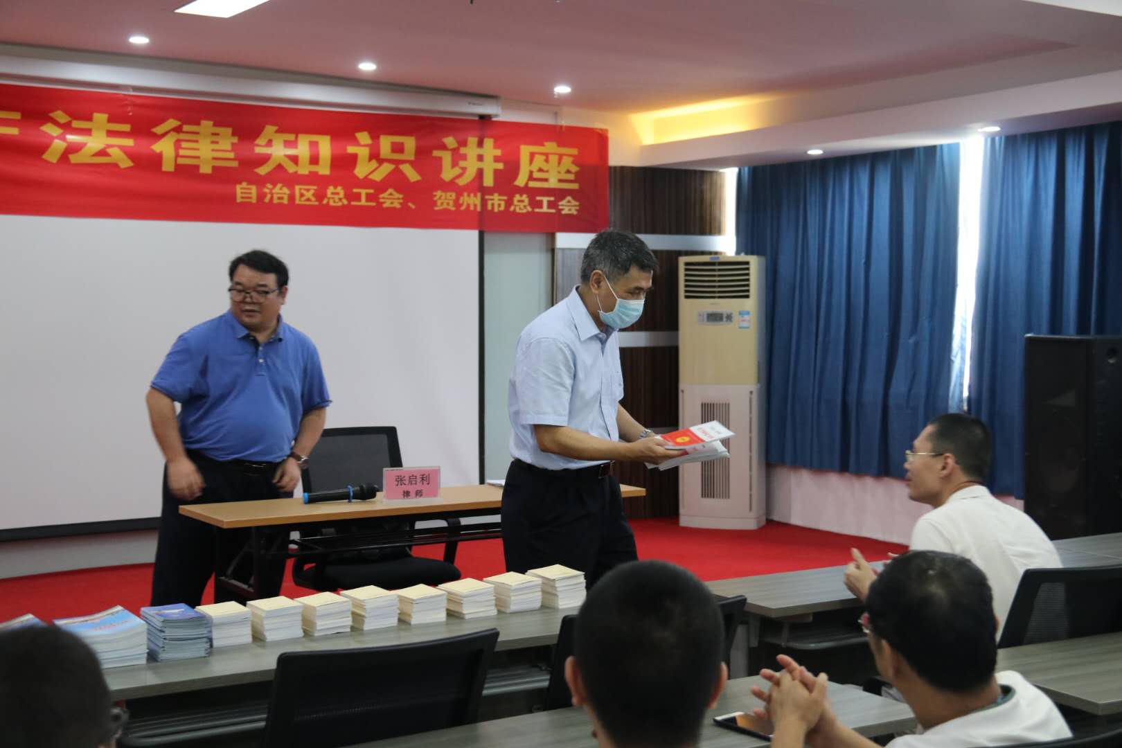 座談會結束后,元德新一行在復工復產法律講座現場,向聽課人員發放了《職工勞動權益200問》、《農民工維權手冊》、《廣西壯族自治區企業工資集體協商條例》、《保障農民工工資支付條例》和《復工復產法律宣傳材料》等資料。