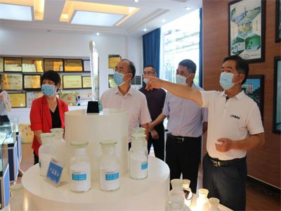 陸元鴻在公司展廳作了介紹,他風趣地說,今天正好是科隆公司24歲生日,在這個有紀念意義的日子,各位領導到公司指導工作,是科隆公司的榮幸。科隆公司在重質碳酸鈣行業深耕細耘20余年,獲得“中國碳酸鈣行業重鈣十強”、“全國五一勞動獎狀”、“國家高新技術企業”、“國家知識產權優勢企業”和“廣西重質碳酸鈣工程技術研究中心”等殊榮,是《碳酸鈣分析方法》等國家標準及《工業用重質碳酸鈣》等行業標準的起草單位。產品廣泛用于人造石、造紙、涂料、橡膠、塑料、油墨、建材及日用化工等行業。