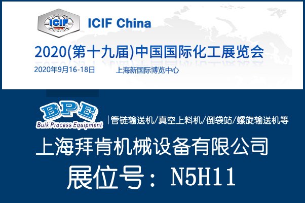 2020(第十九屆)中國國際化工展覽會,定于2020年9月16-18日在上海新國際博覽中心舉辦,上海拜肯機械設備有限公司應邀亮展。