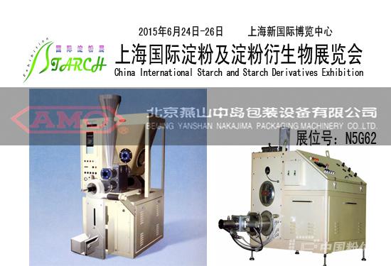 2015 年6 月24 日-26 日,"第十屆上海國際淀粉及淀粉衍生物展覽會"將在上海新國際博覽中心舉行。北京燕山中島包裝設備有限公司將攜自動定量包裝機、高濃度粉體壓送機等產品參展。北京燕山中島包裝設備有限公司展位號為N5G62,歡迎蒞臨參觀洽談!