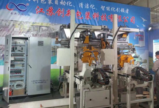 江蘇創(chuàng)新全自動清潔化粉料包裝生產(chǎn)線生產(chǎn)線由自動上袋系統(tǒng)、定量自動包裝機、封口裝置、輸送機、倒包機構(gòu)、重量復(fù)檢機、剔除機、整形機、噴碼機、碼垛機器人、托盤庫、滿垛整形機、纏繞機等設(shè)備組成,可以完成粘性粉體、超輕細(xì)粉體及普通物料的全自動定量包裝碼垛生產(chǎn)。通過為包裝系統(tǒng)配備高精度傳感器,這條生產(chǎn)線可以實現(xiàn)技術(shù)人員、監(jiān)控設(shè)備、產(chǎn)品運行現(xiàn)場的互聯(lián)互通,實時遠(yuǎn)程在線監(jiān)控設(shè)備的運行狀況,及時有效地安排設(shè)備檢測、維護以及遠(yuǎn)程技術(shù)支持。