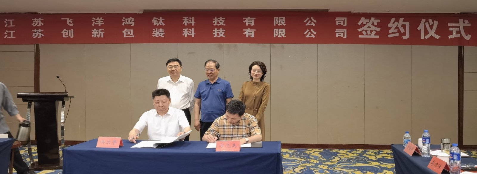 隨后,江蘇創新包裝科技有限公司董事長方先其同江蘇飛洋鴻鈦科技有限公司法人代表楊文贊在簽約書上簽字,達成簽約合作。